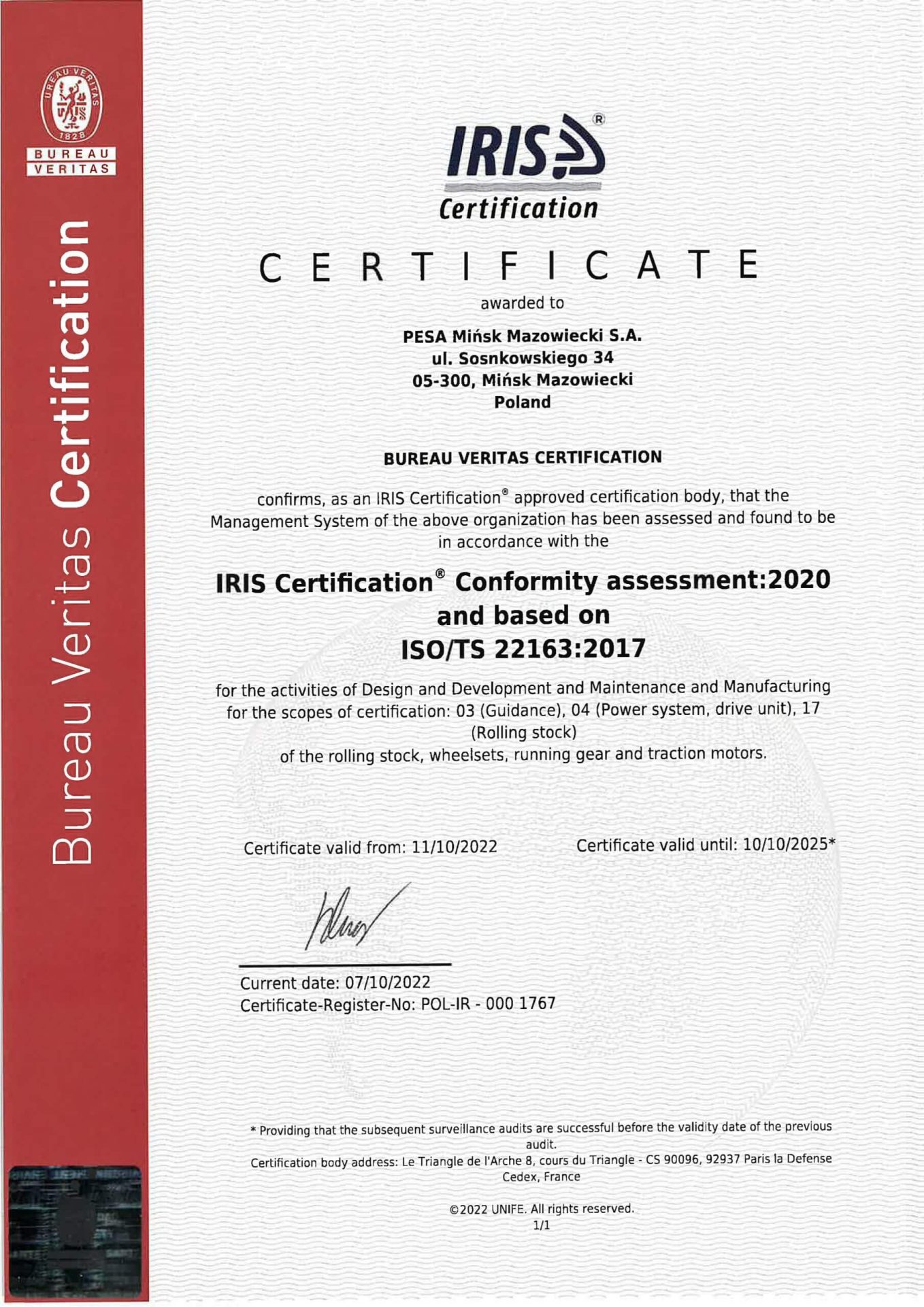 Firma dąży do zapewnienia najwyższej jakości we wszystkich aspektach działalności, z pełnym poszanowaniem wymagań branży kolejowej oraz norm odniesienia Zintegrowanego Systemu Zarządzania Jakością, Środowiskiem i Utrzymaniem