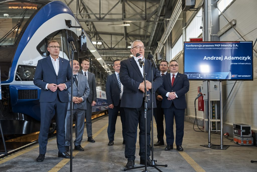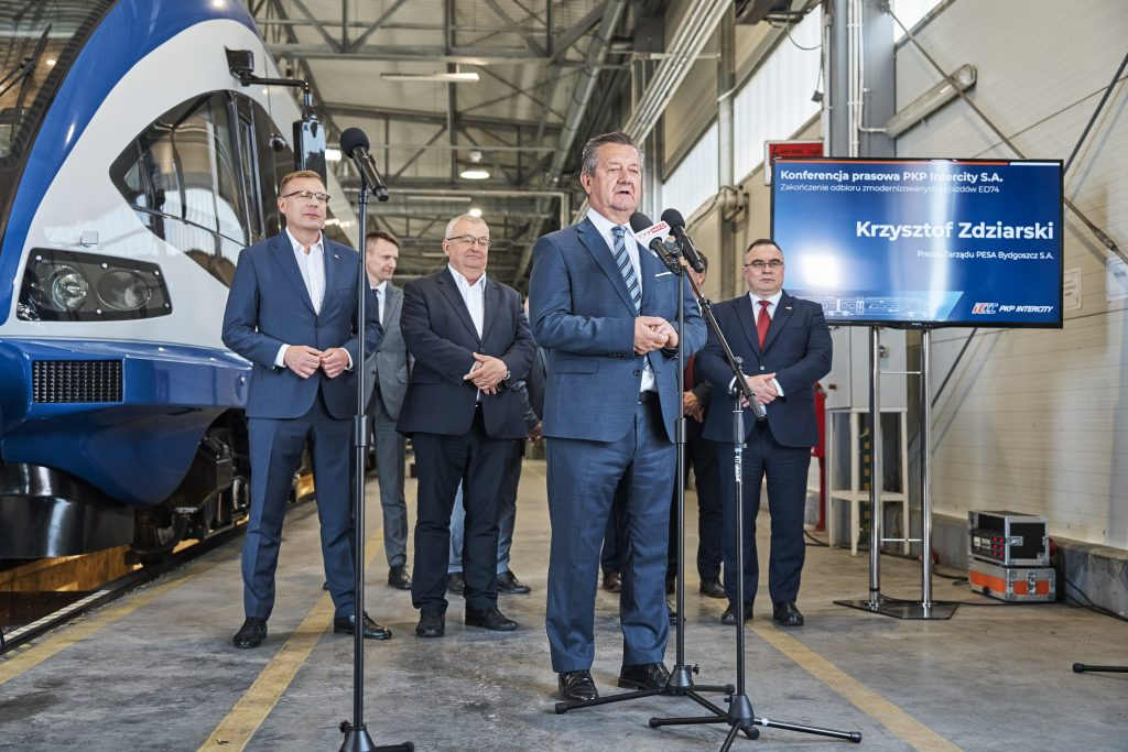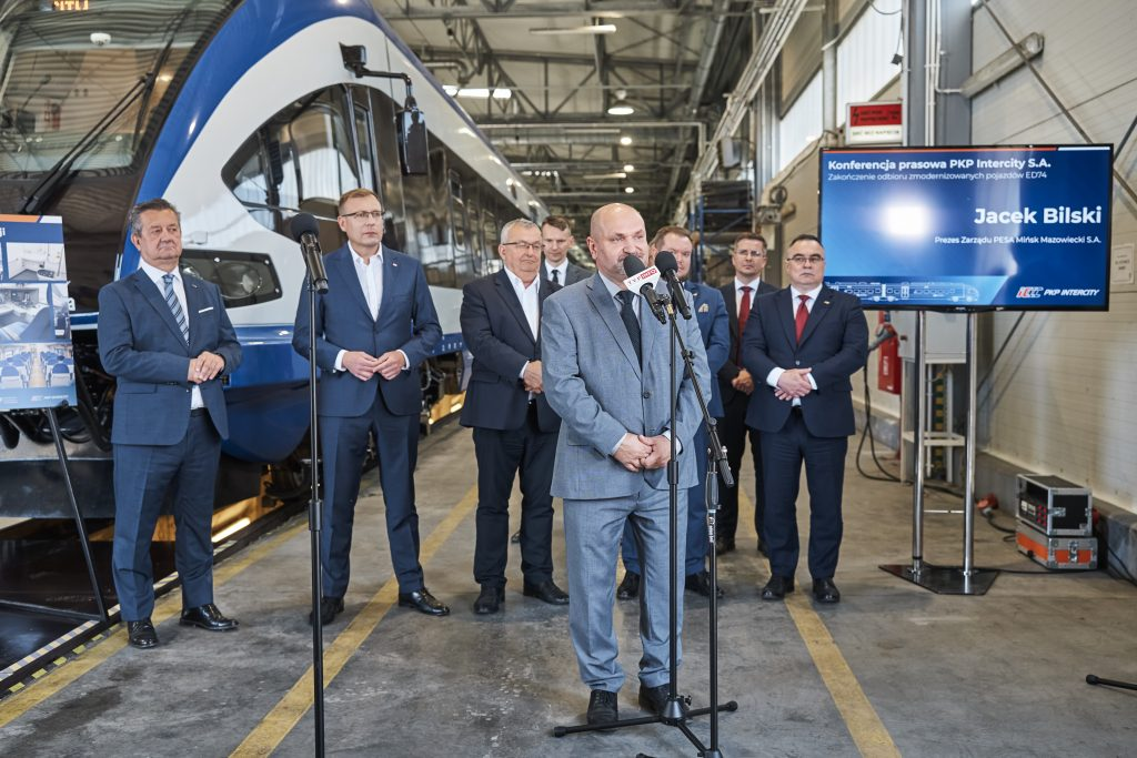 PESA Mińsk Mazowiecki posiada duże doświadczenie w przeglądach i modernizacjach taboru kolejowego, więc z zainteresowaniem przystąpiliśmy do zaprojektowania i dokonania przebudowy elektrycznych zespołów trakcyjnych ED74 przystosowując je w pełni do ruchu dalekobieżnego. Zmniejszenie powierzchni okien, likwidacja jednej pary drzwi na każdym członie oraz zastosowanie nowoczesnych materiałów izolacyjnych pozwoliły zapewnić odpowiedni poziom komfortu termicznego i akustycznego. A nowoczesny napęd jest gwarantem odpowiedniej dynamiki jazdy i niezawodności. Składam podziękowania pracownikom PKP Intercity za partnerską współpracę oraz wszystkim pracownikom zaangażowanych w ten wymagający projekt, który pomimo pandemii oraz skutków wojny zrealizowaliśmy terminowo – mówi Jacek Bilski, Prezes Zarządu PESA Mińsk Mazowiecki